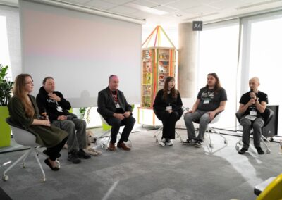 PANEL DYSKUSYJNY – Dostępność gier komputerowych w oczach gracza i twórcy – wspólne cele | Prowadzący: Konrad Gadzina | Uczestnicy: Karolina Kałużyńska, Dorota Orzeszek, Jacek Piotrowski, Magdalena Szewczyk, Piotr Tarasewicz, Tomasz „Lirin” Tworek, Julia Zakrocka